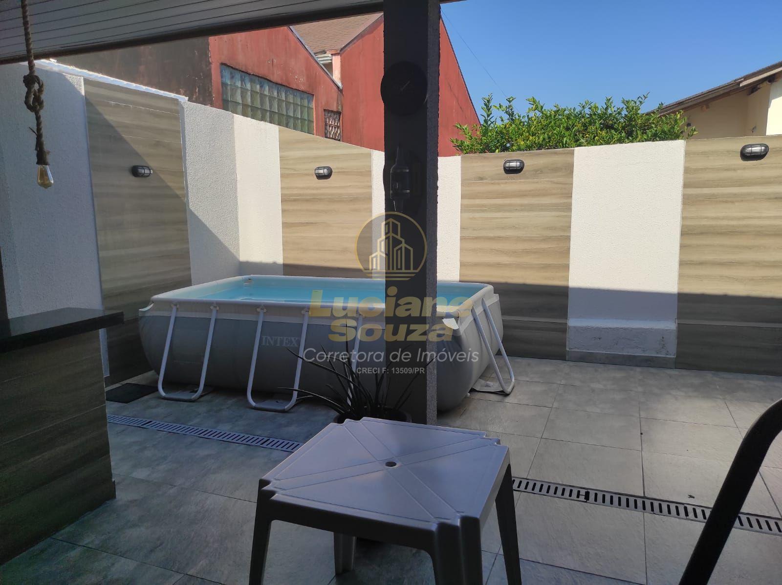contém piscina retangular desmontável que fica no imóvel , a casa fica semi mobiliada.